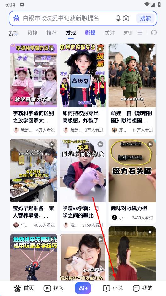 1、打開百度App,進(jìn)入首頁(yè)后,點(diǎn)擊底部導(dǎo)航欄中的小說(shuō)選項(xiàng),進(jìn)入小說(shuō)頻道。