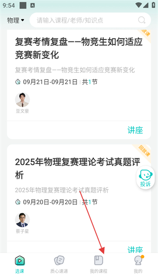 2、在我的課程頁面中,找到想要觀看回放的具體課程并點擊。