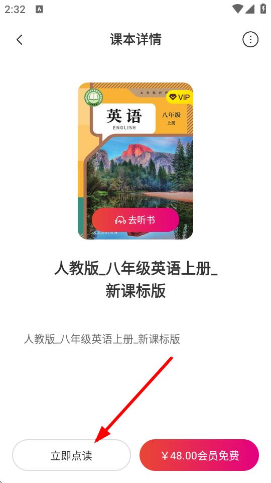 3、在課本詳情頁(yè)面,點(diǎn)擊下方立即點(diǎn)讀按鈕進(jìn)入點(diǎn)讀界面。