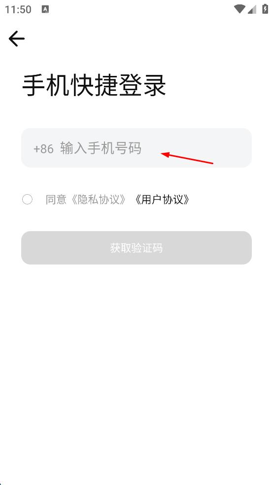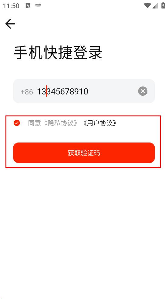 4、填寫好手機號碼后,勾選同意隱私協(xié)議,用戶協(xié)議,然后點擊“獲取驗證碼”按鈕,等待接收驗證碼,后續(xù)輸入驗證碼即可完成登錄。
