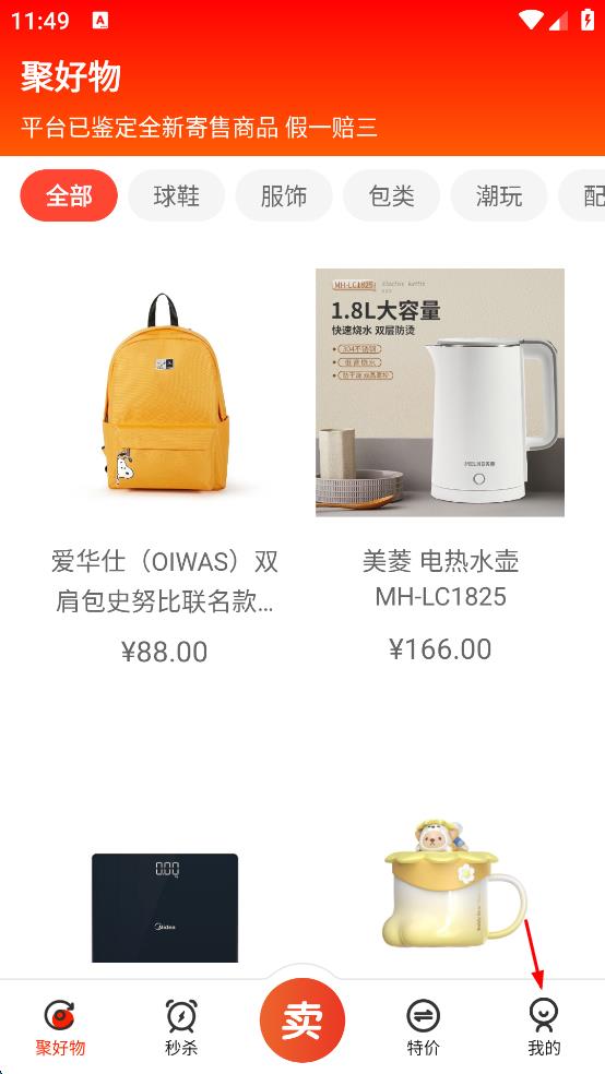 2、進入聚好物頁面后,能看到各類商品展示,若要登錄賬號,點擊頁面右下角的“我的”選項,進入個人相關(guān)界面。