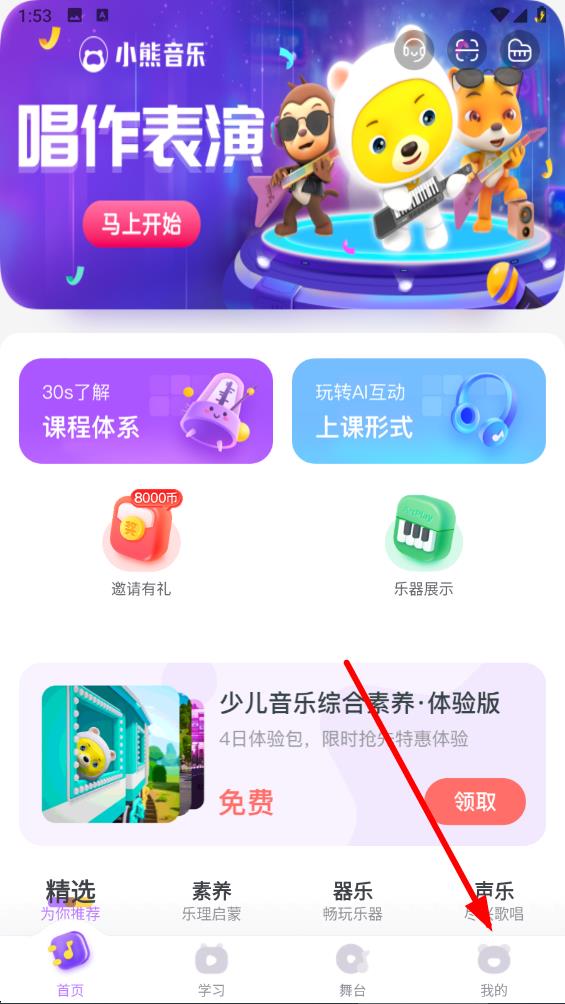 1、打開小熊音樂app,點擊底部導(dǎo)航欄中我的圖標,進入相關(guān)界面。