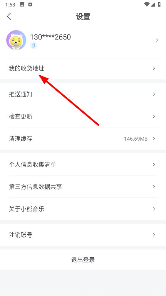 3、在設(shè)置頁面里,找到并點擊我的收貨地址選項,進入地址管理界面。