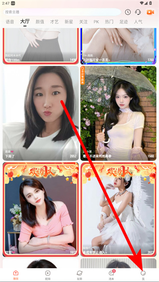 1、打開紅人直播APP,點(diǎn)擊底部導(dǎo)航欄最右側(cè)的我的,進(jìn)入個人頁面。