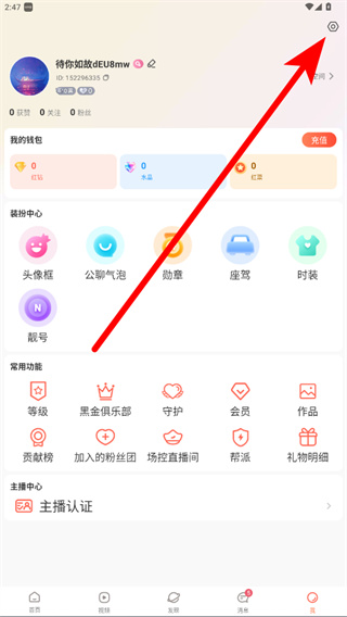 2、在個人頁面中,點(diǎn)擊右上角的設(shè)置圖標(biāo),進(jìn)入設(shè)置界面。