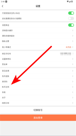 3、在設(shè)置界面里,找到并點(diǎn)擊賬號注銷選項,進(jìn)入賬號注銷頁面。