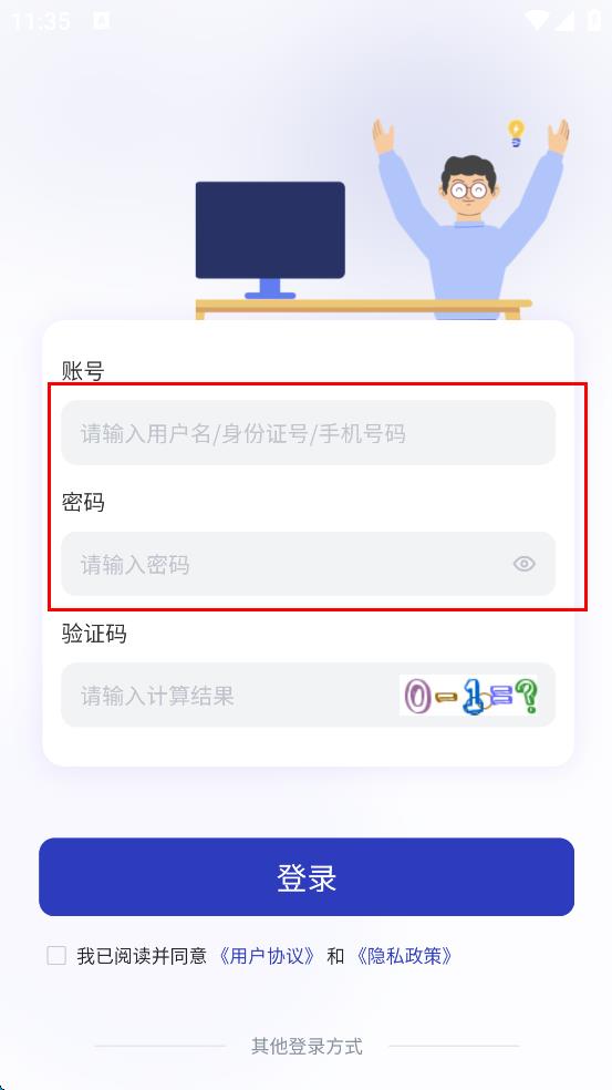 2、在登錄頁面的賬號輸入框中,輸入用戶名、身份證號或手機號碼。