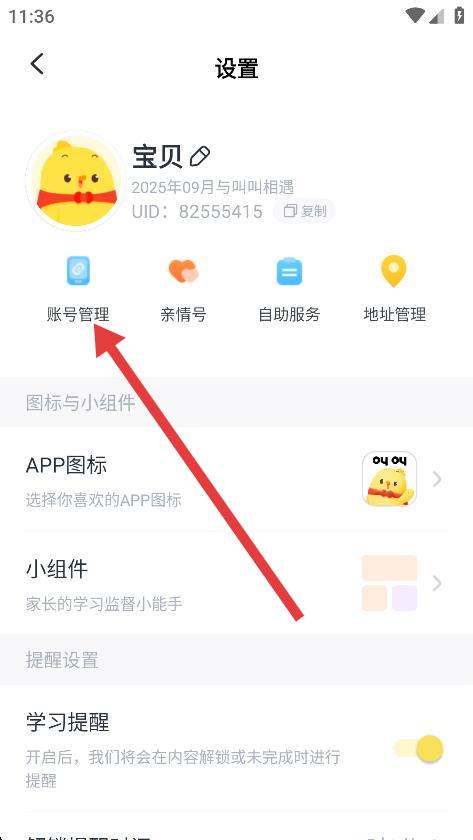 3、在設(shè)置頁(yè)面中,找到并點(diǎn)擊賬號(hào)管理選項(xiàng)。