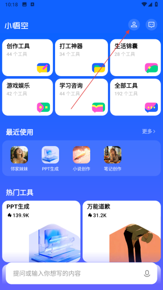 1、打開小悟空應(yīng)用,進(jìn)入設(shè)置頁面。