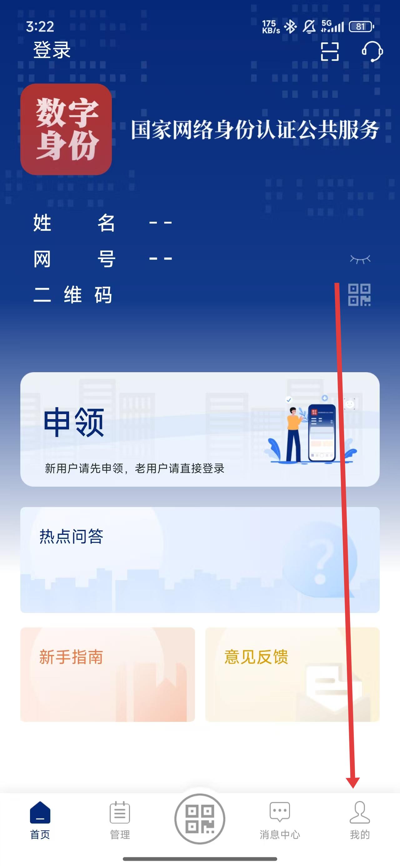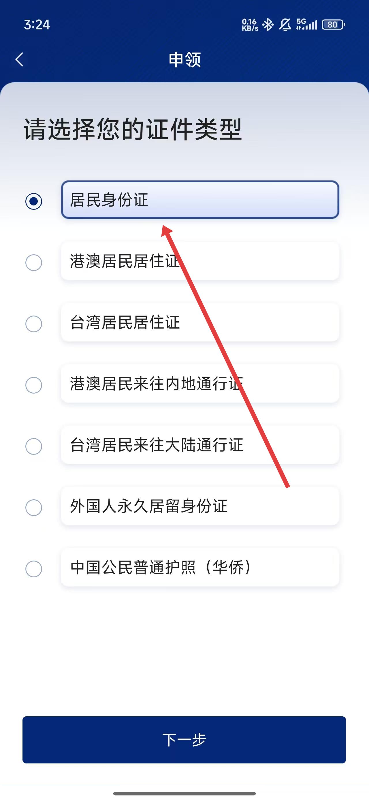 4、跳轉(zhuǎn)到申領(lǐng)頁(yè)面中,可以選擇點(diǎn)擊使用居民身份證進(jìn)行注冊(cè)。