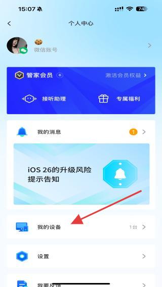 2、進入個人中心的頁面內(nèi),點擊我的設(shè)備的功能按鈕。