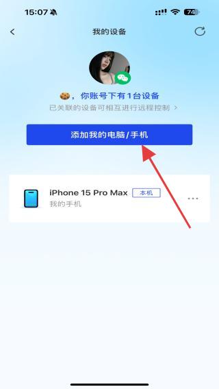 3、在我的設(shè)備頁面內(nèi),點擊添加我的電腦/手機的按鈕。