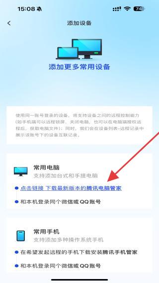 4、進入添加設(shè)備的界面內(nèi),點擊鏈接下載后即可添加電腦設(shè)備。