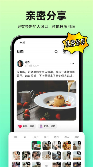 2、自動(dòng)推送家人的更新,不會(huì)再錯(cuò)過彼此的動(dòng)態(tài),拉近彼此的情感的距離;
