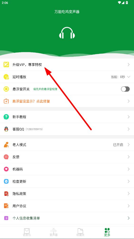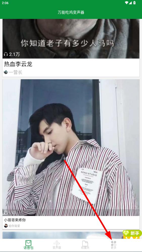 1、打開萬能吃雞變聲器APP,點(diǎn)擊底部導(dǎo)航欄最右側(cè)更多選項(xiàng)。