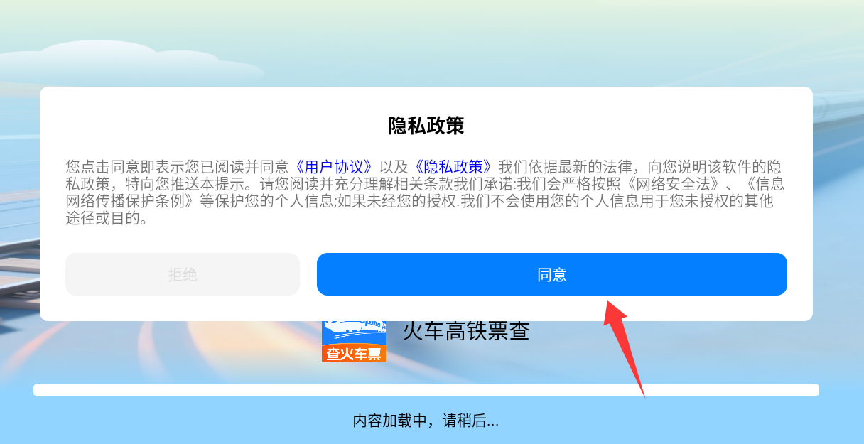 1、點(diǎn)擊隱私政策里的同意并繼續(xù)。