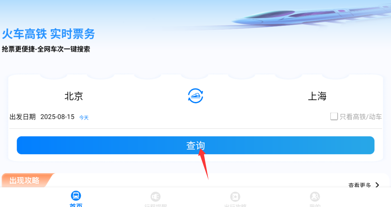 2、這里概要查北京到上海的車票。