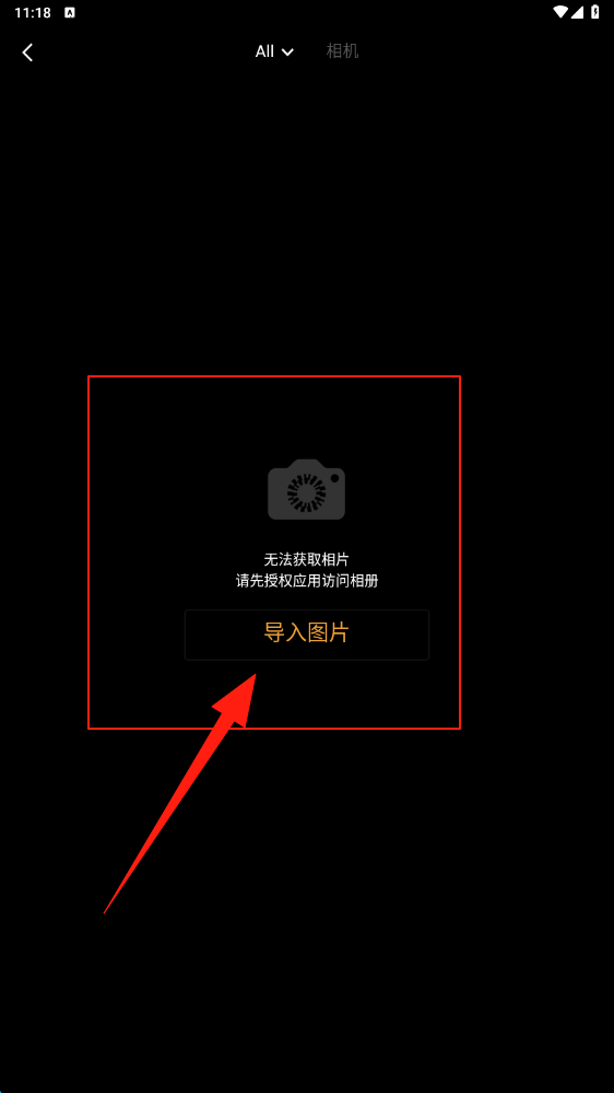 3、若無法獲取相片,點(diǎn)擊導(dǎo)入圖片按鈕,按提示授權(quán)應(yīng)用訪問相冊(cè),導(dǎo)入圖片進(jìn)行編輯處理。