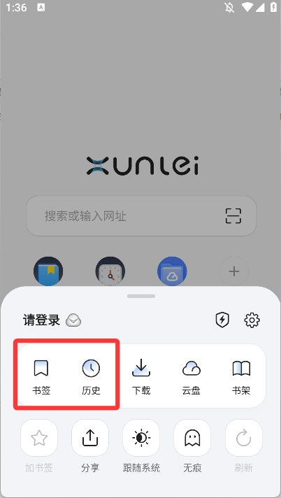 2、在這里可以看到我們的書簽和歷史瀏覽記錄。