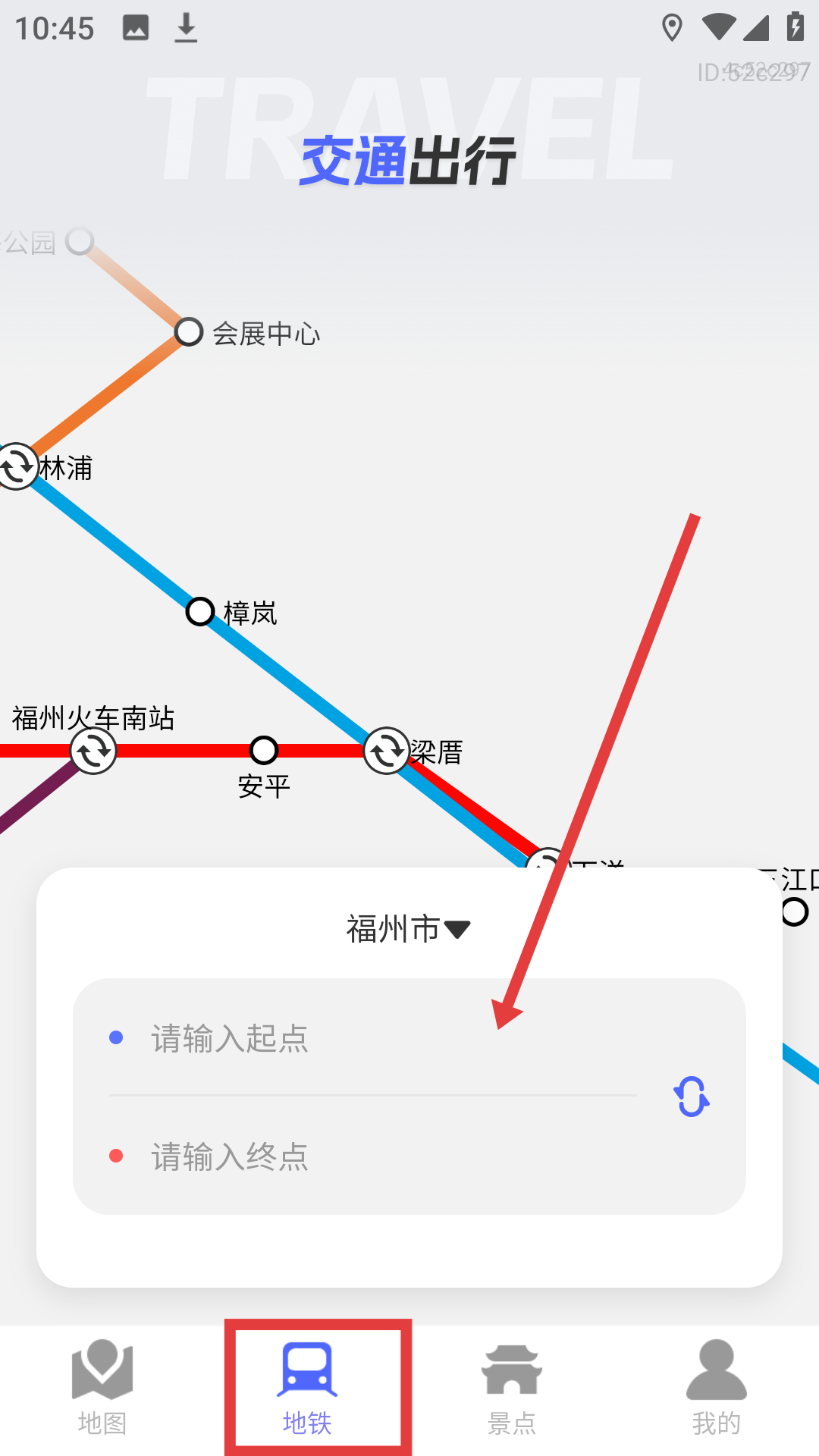 2、在交通出行的地鐵頁面,你可以輸入起點(diǎn)和終點(diǎn),規(guī)劃地鐵出行路線,選擇好城市后,就能獲取到詳細(xì)的地鐵換乘等信息,讓你坐地鐵出行更順暢。