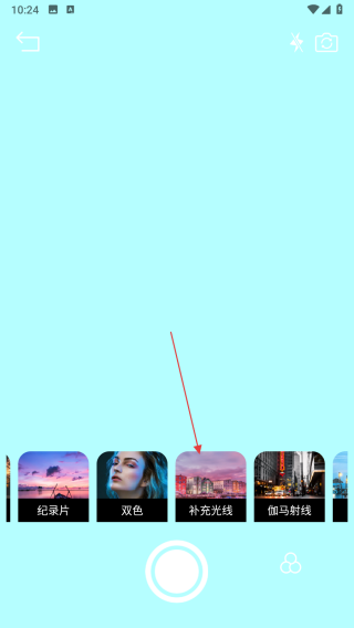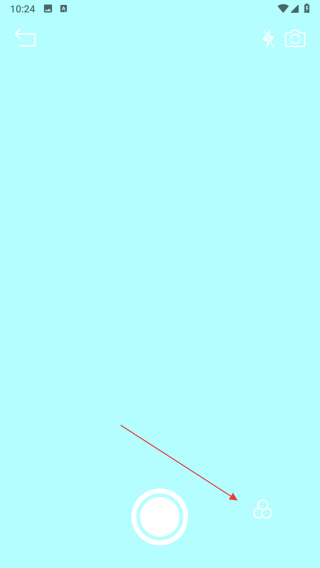 2、在拍攝界面中,點擊紅箭頭指向的類似三個疊加圓形的圖標,打開濾鏡選擇菜單。