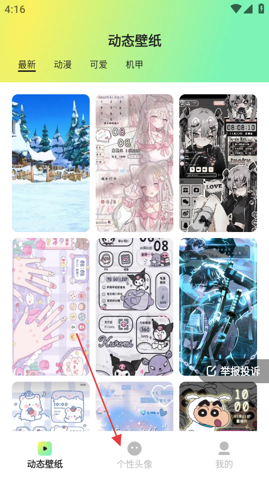 1、在動態(tài)壁紙頁面,點擊個性頭像,進入個性頭像頁面。