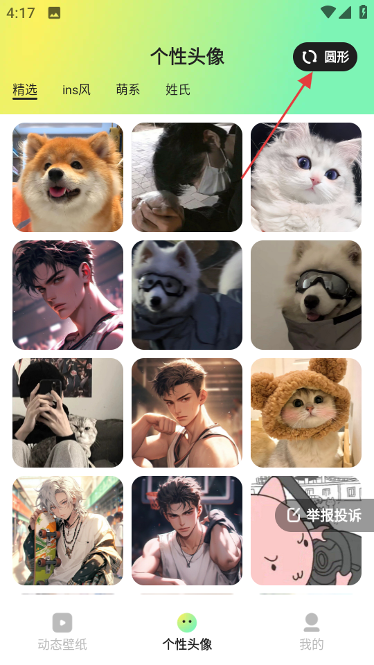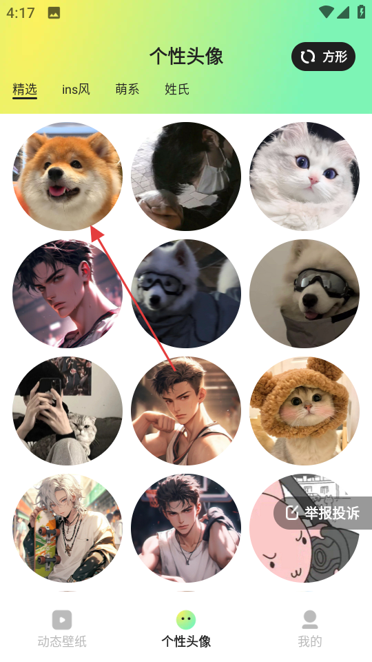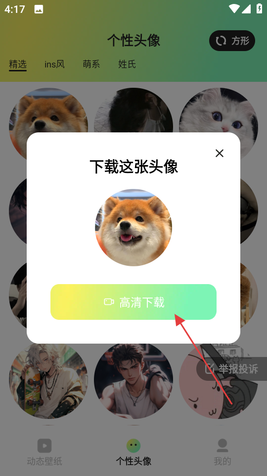 3、在圓形頭像列表中,點擊心儀的頭像,彈出下載提示框。