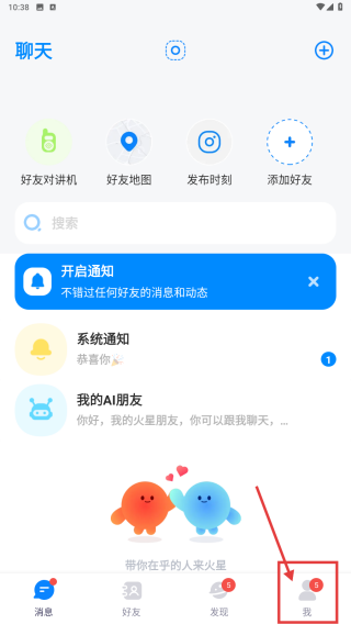 1、打開社交類APP,點(diǎn)擊底部我的選項(xiàng),進(jìn)入個人中心頁面。