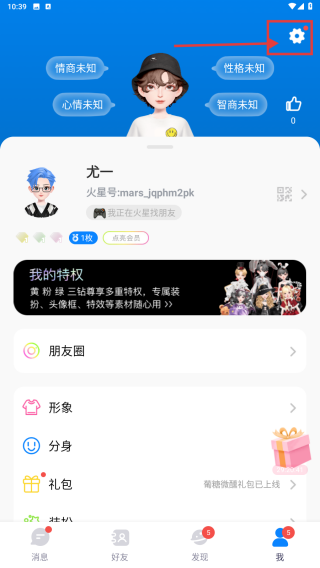 2、在個人中心,點(diǎn)擊右上角設(shè)置圖標(biāo),進(jìn)入設(shè)置界面。