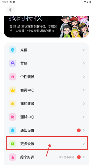 3、在設(shè)置頁面,點(diǎn)擊更多設(shè)置選項(xiàng),進(jìn)入更多設(shè)置頁。