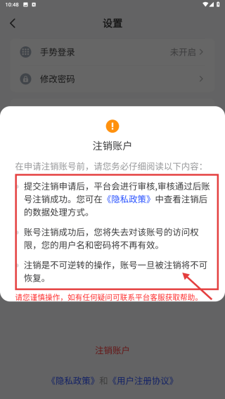 3、在設(shè)置頁面,點擊注銷賬戶按鈕,查看注銷賬戶說明。