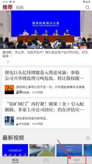 1、打開新聞類APP,點(diǎn)擊底部我的選項(xiàng),進(jìn)入個人中心頁面。
