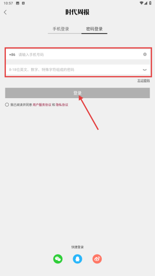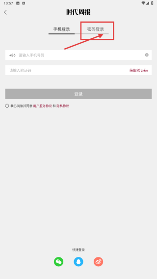 3、選擇密碼登錄模式,輸入手機(jī)號碼和登錄密碼。