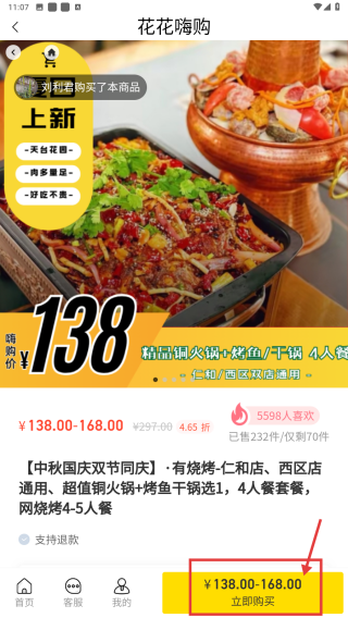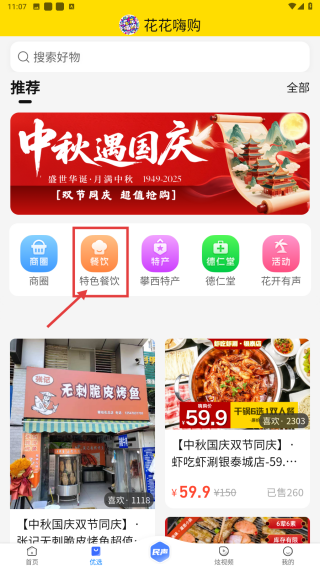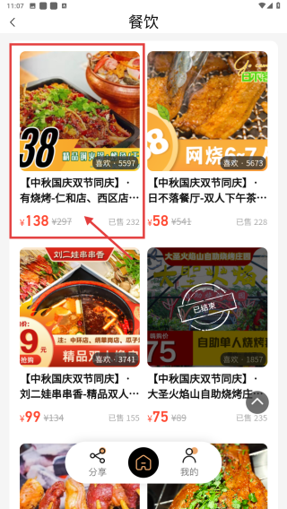 3、在餐飲服務(wù)列表中,找到中秋國慶雙節(jié)同慶有燒烤-仁和店點擊進(jìn)入詳情頁。