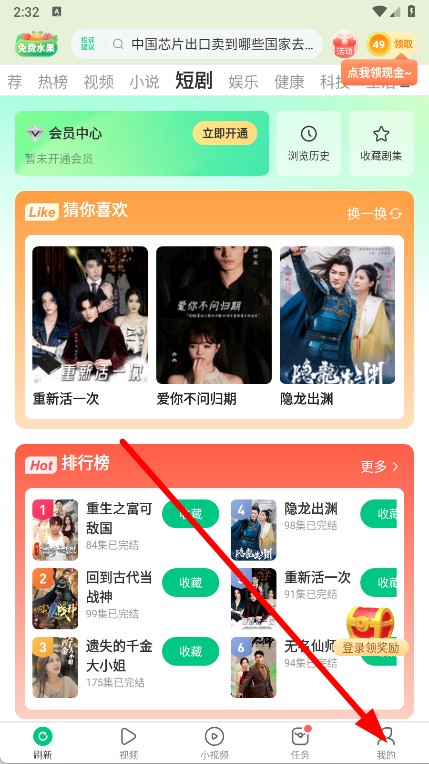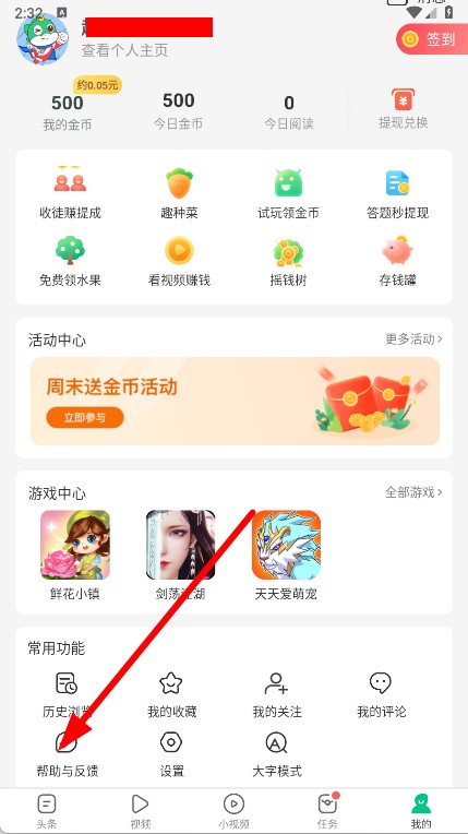 1、打開趣頭條APP,點擊底部導航欄我的。