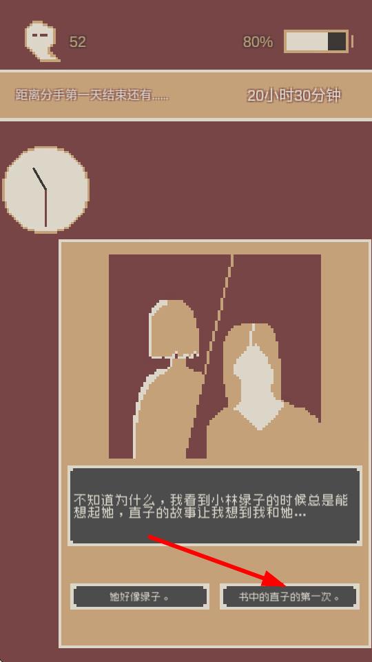 3、數(shù)值影響結(jié)局觸發(fā):核心數(shù)值“喪值”決定最終結(jié)局,喪值較高觸發(fā)“釋懷”結(jié)局,較低則觸發(fā)“和好”結(jié)局;手機(jī)電量為有限資源,使用手機(jī)的不同行為。