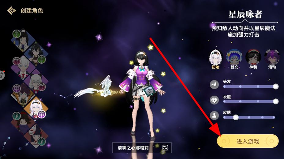 1、創(chuàng)建角色選擇不同的角色形象,還能對(duì)頭發(fā)、衣服、皮膚等進(jìn)行調(diào)整,完成角色設(shè)置后,點(diǎn)擊進(jìn)入游戲,即可開啟冒險(xiǎn)之旅。
