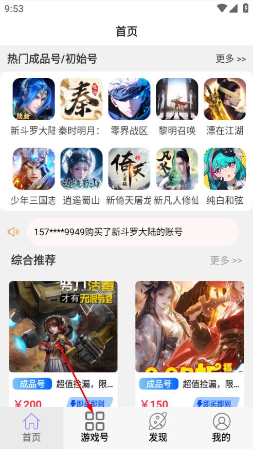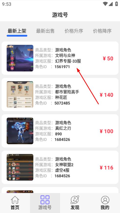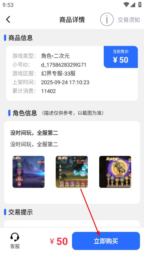 2、在游戲號列表頁面,選擇想要購買的游戲號,進(jìn)入商品詳情頁面。