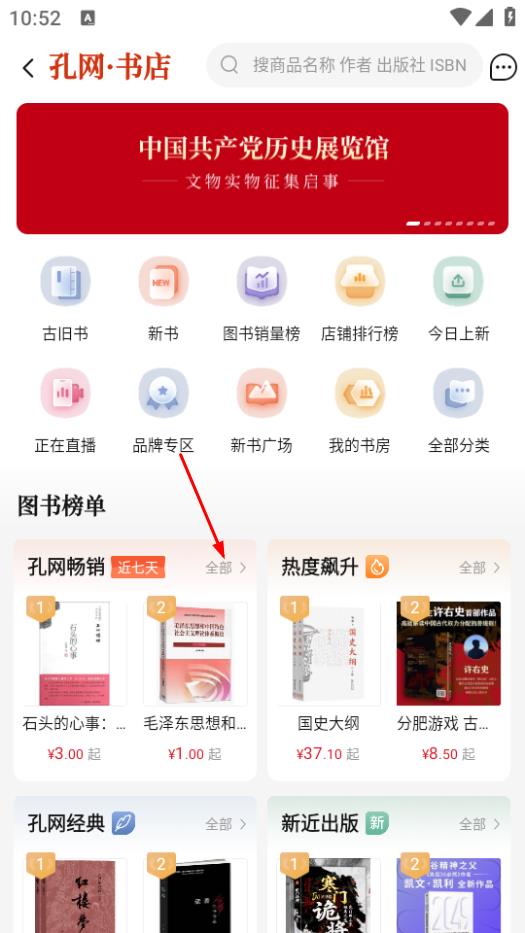 2、在孔網(wǎng)書(shū)店頁(yè)面,點(diǎn)擊孔網(wǎng)暢銷后的全部,進(jìn)入孔網(wǎng)暢銷榜頁(yè)面。