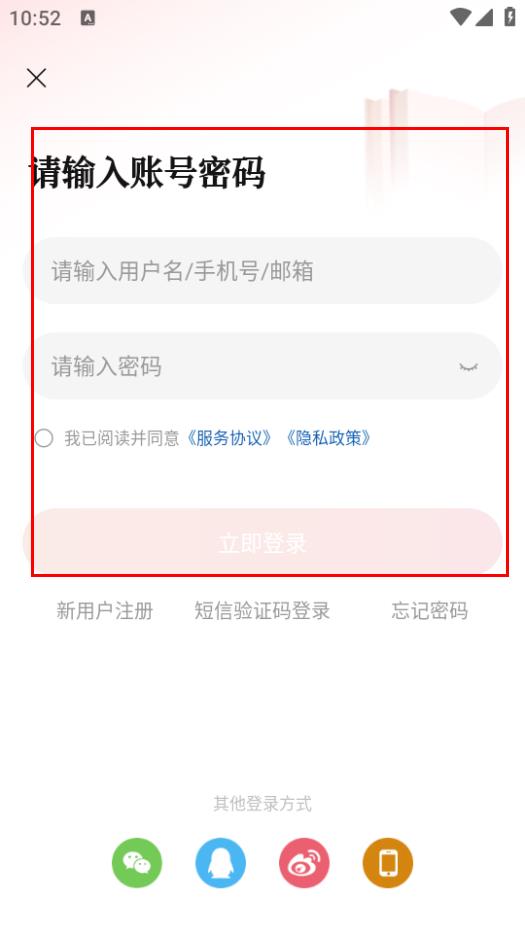 4、在登錄頁(yè)面,輸入信息勾選協(xié)議后點(diǎn)擊立即登錄,進(jìn)行書(shū)籍購(gòu)買操作。