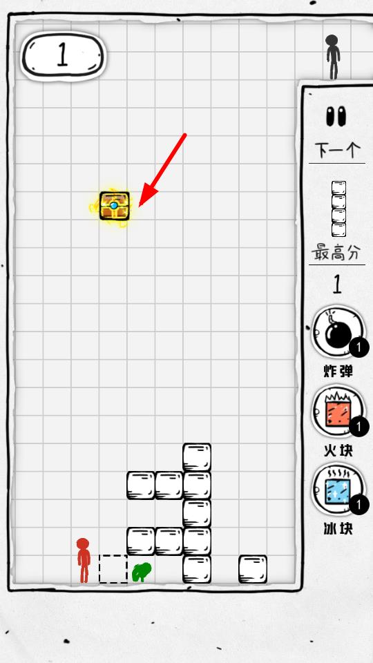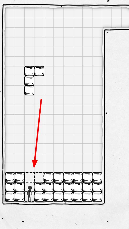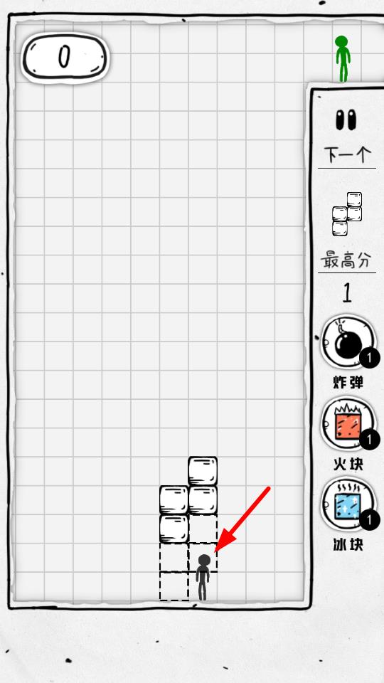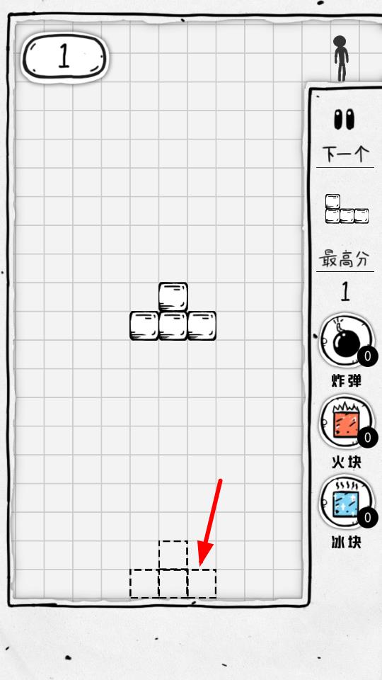 2、在方塊下落前,將方塊移動(dòng)到箭頭指向的虛線區(qū)域,可使方塊合理堆疊,避免堆積過高導(dǎo)致游戲失敗。