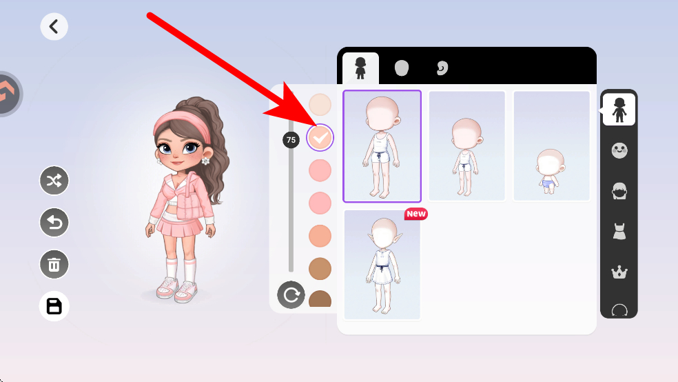 2、在形象定制界面,可選擇不同的身體模板,點擊對應(yīng)的身體膚色模板選項,為人偶選定合適的身體基礎(chǔ)形態(tài),奠定定制的基礎(chǔ)。