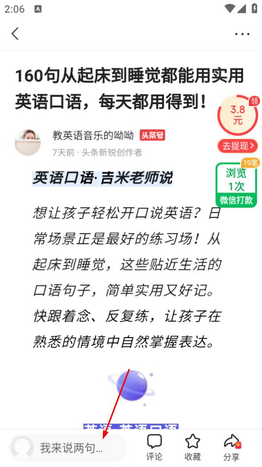 3、進(jìn)入文章詳情頁后,點(diǎn)擊下方我來說兩句可進(jìn)行評(píng)論。
