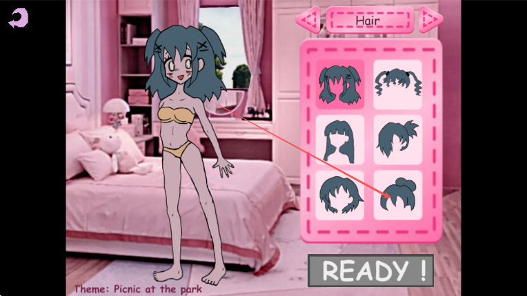 1、進入游戲,看到主題為Theme Picnic at the park,點擊箭頭所指發(fā)飾欄,選擇一款發(fā)型。