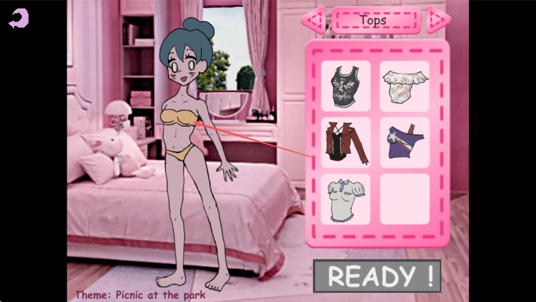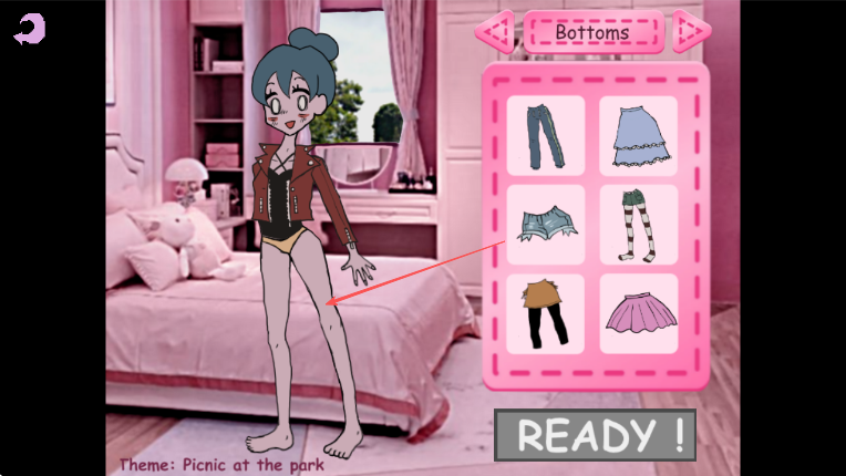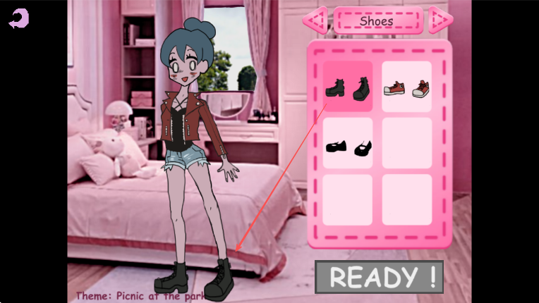 4、最后,在Shoes鞋子欄里,按箭頭方向選擇一雙鞋子,完成角色野餐主題的穿搭后,點擊READY!。