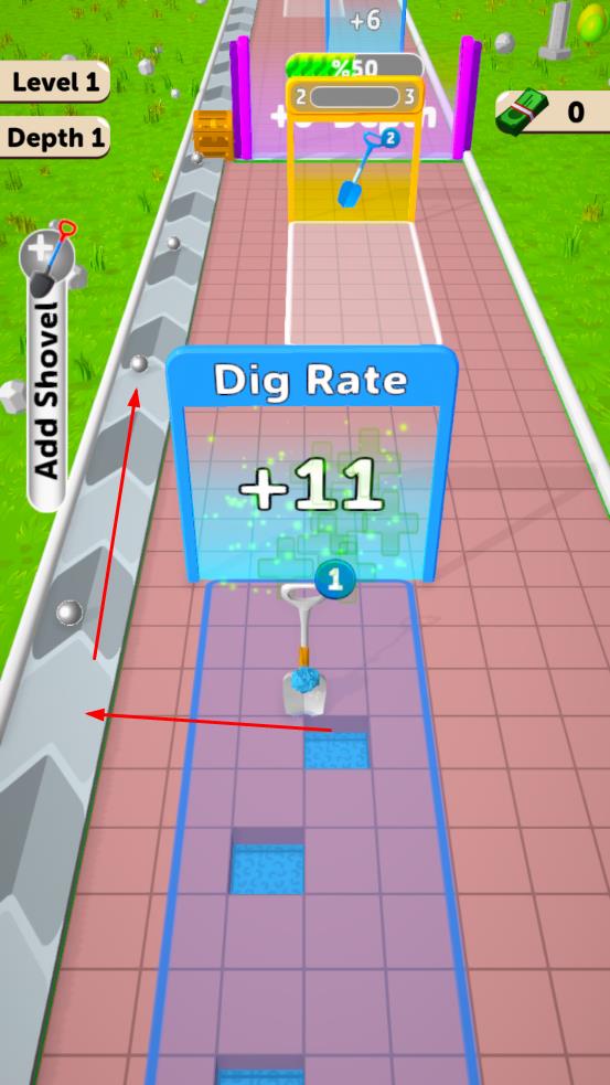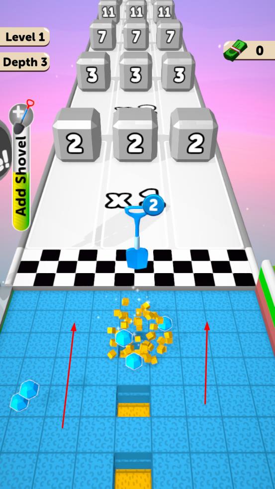 3、持續(xù)挖掘,到達(dá)關(guān)卡的終點(diǎn)區(qū)域,可獲得更多獎(jiǎng)勵(lì)。
