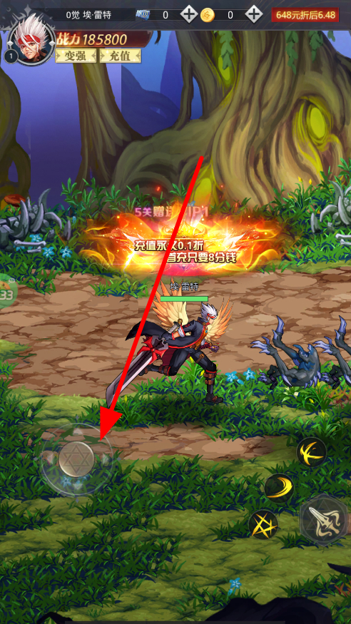1、通過操作移動按鈕,控制角色在場景內(nèi)移動,朝著敵人或目標方向移動,為技能釋放與戰(zhàn)斗創(chuàng)造有利位置,推進冒險進程。