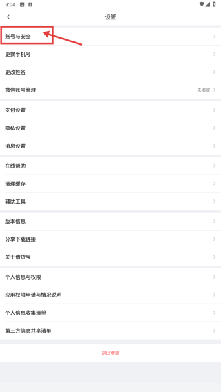 3、在設(shè)置頁面,點擊賬號與安全選項,進入賬號安全界面。