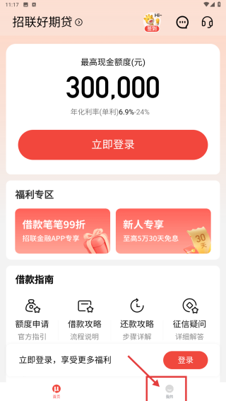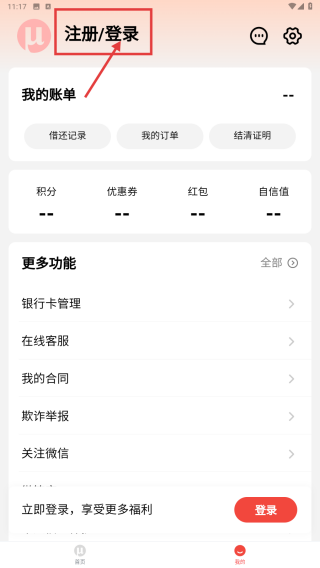 1、打開借貸類應(yīng)用,點(diǎn)擊底部我的選項(xiàng),進(jìn)入個(gè)人頁(yè)面。