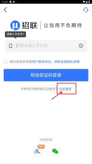 3、在登錄頁(yè)面,點(diǎn)擊點(diǎn)此登錄找回賬號(hào)入口,進(jìn)入找回賬號(hào)頁(yè)面。